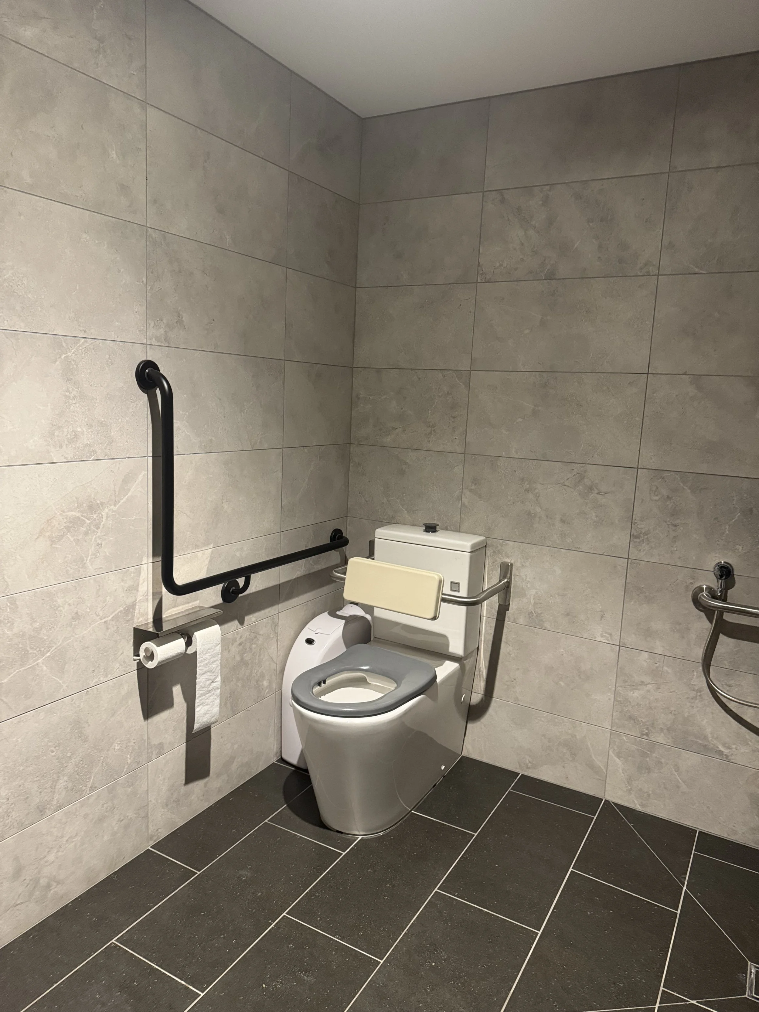Now for the toilets. There’s no accessible toilet on level 10, and back on the ground floor you’ll only find an ambulant toilet. Staff were helpful and directed me to level 2, where there is a proper accessible toilet. It’s not the most convenient detour, but at least the option is available within the building.
