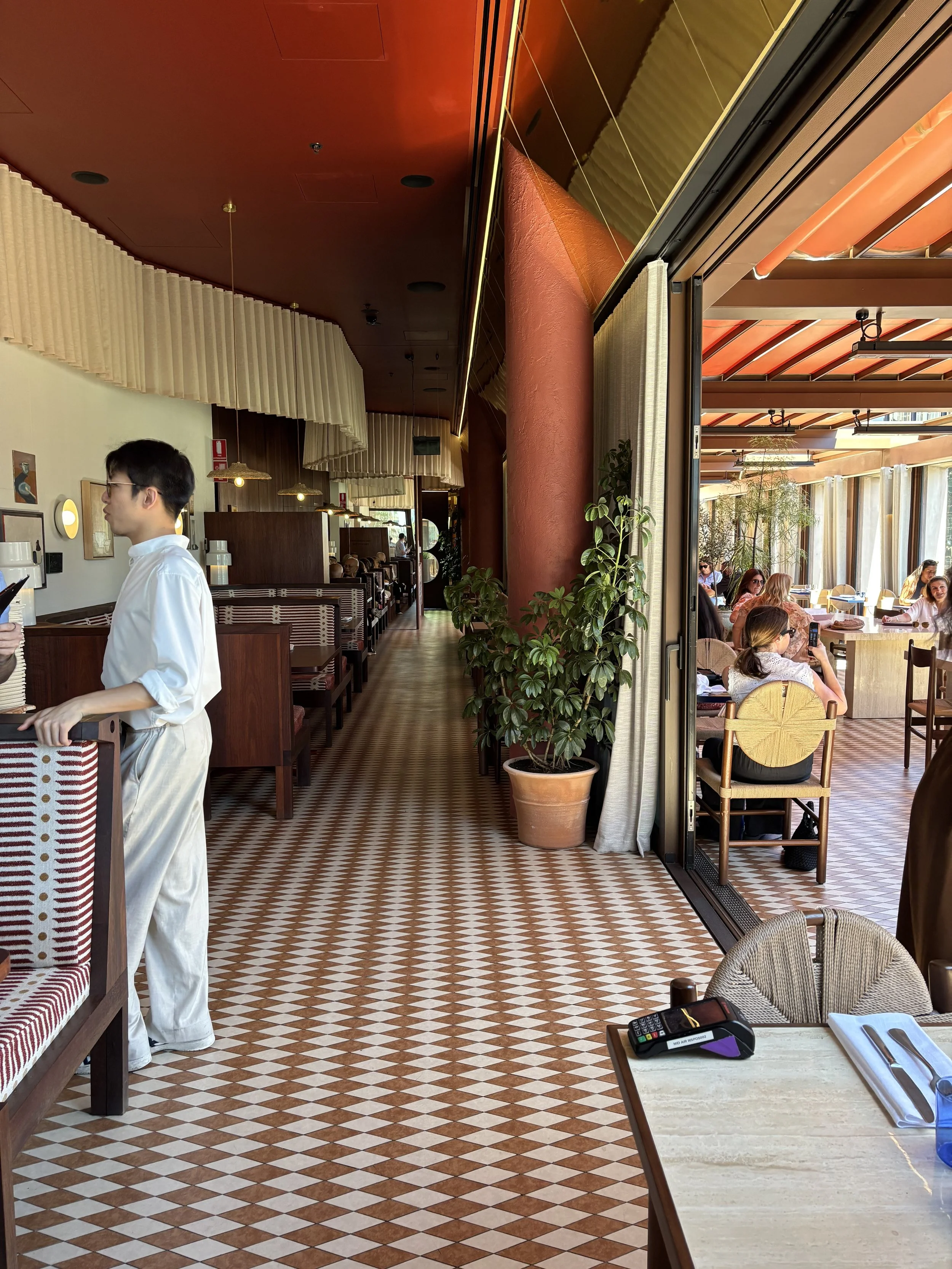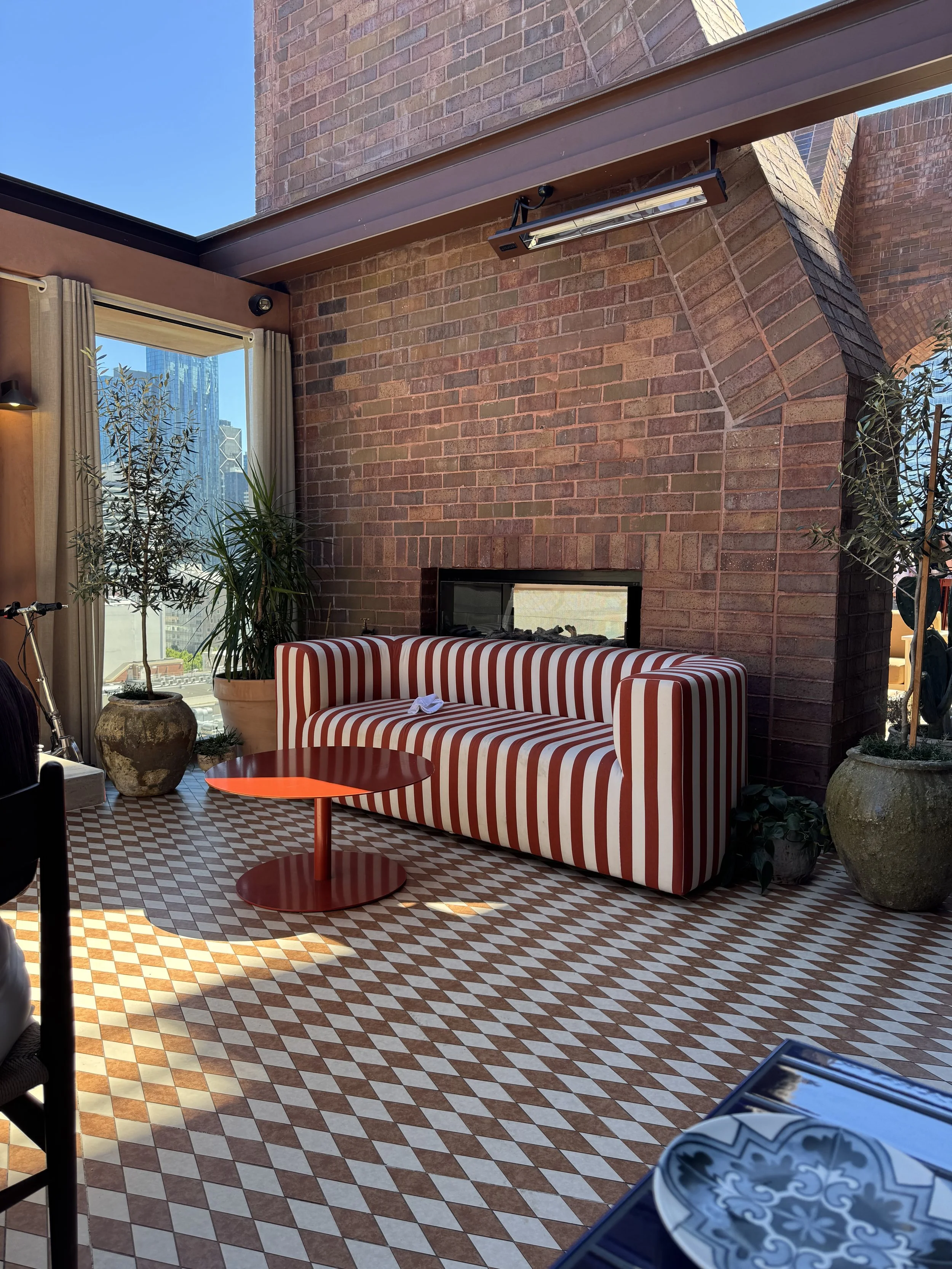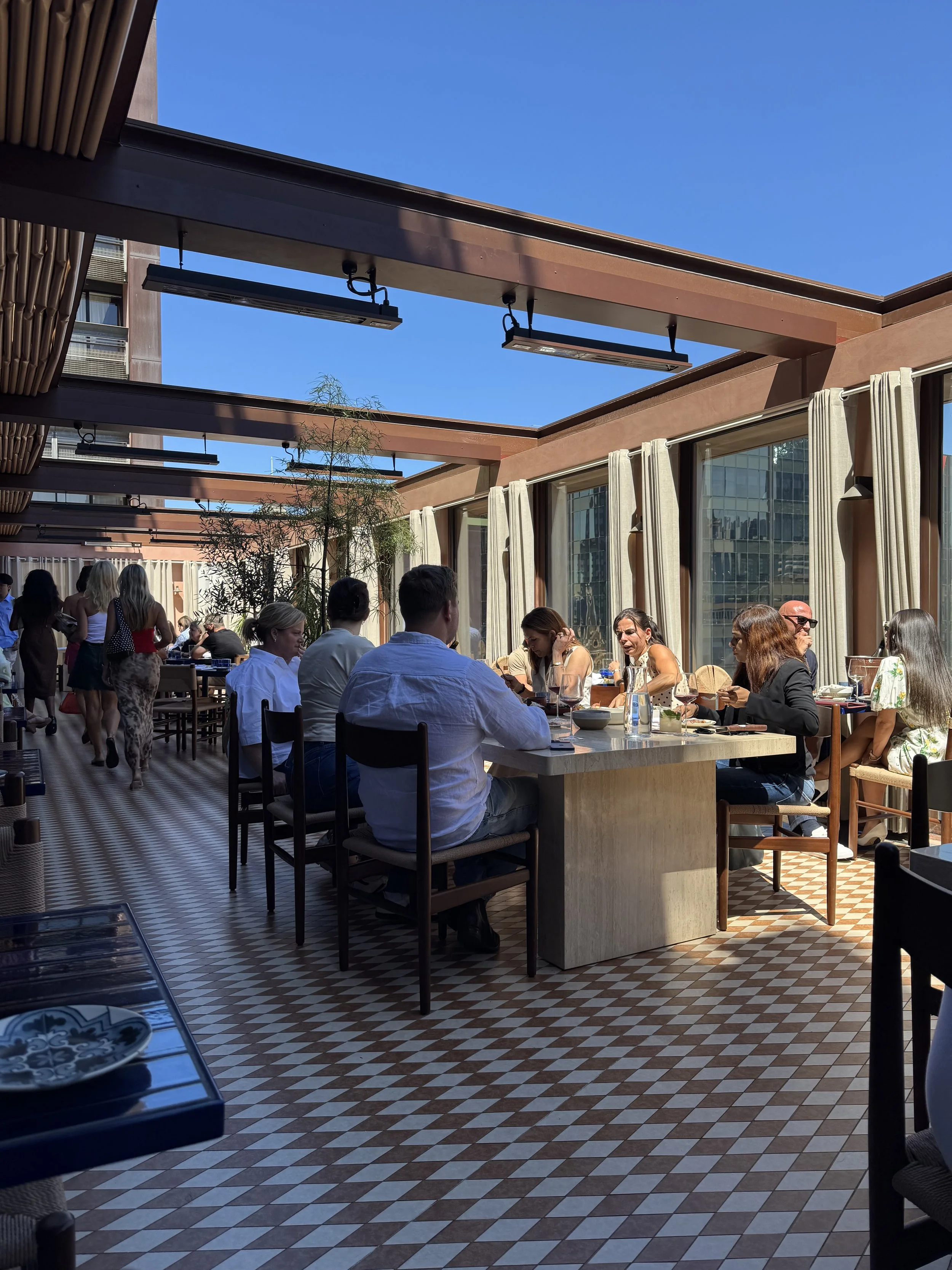 The vibe? Mediterranean inspired, warm, and honestly just a really beautiful space to be in, with skyline views doing a lot of the heavy lifting.