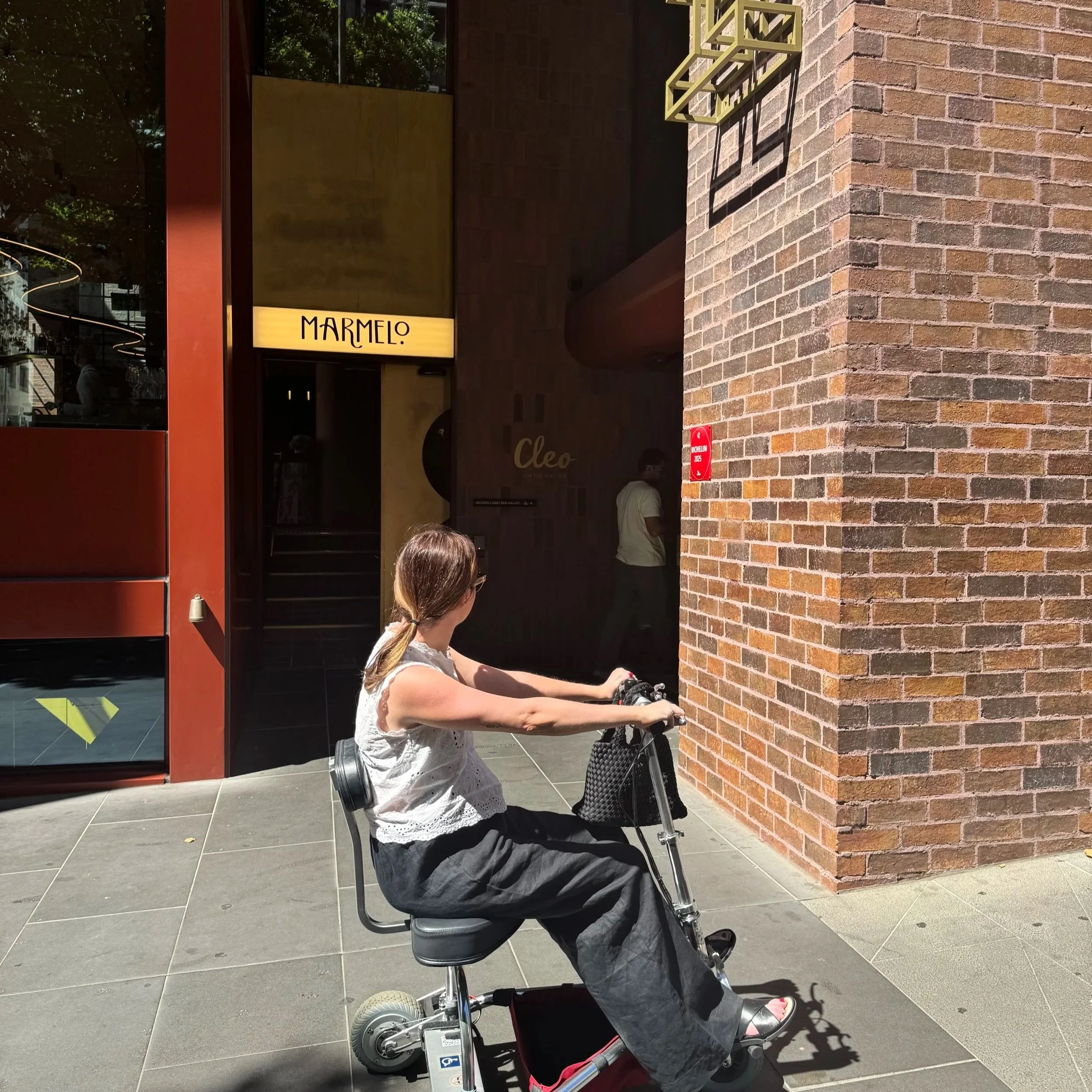 Once you’re up there, the space really opens up. There’s a mix of seating options (so you’re not stuck with one setup) think standard height tables + chairs, booths or lounges. The layout is pretty easy to move through with enough room for mobility aids. There’s also a retractable roof, because Melbourne weather loves to keep us guessing!