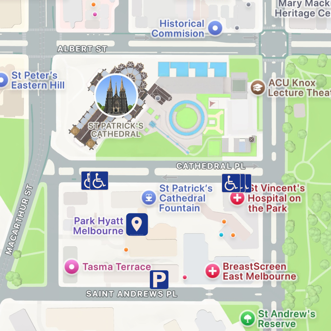 Parking is surprisingly easy! There are two accessible spots right near the step-free side entrance on Cathedral Place, and another three further up the street. The Park Hyatt also have their own carpark if street parking isn’t available.